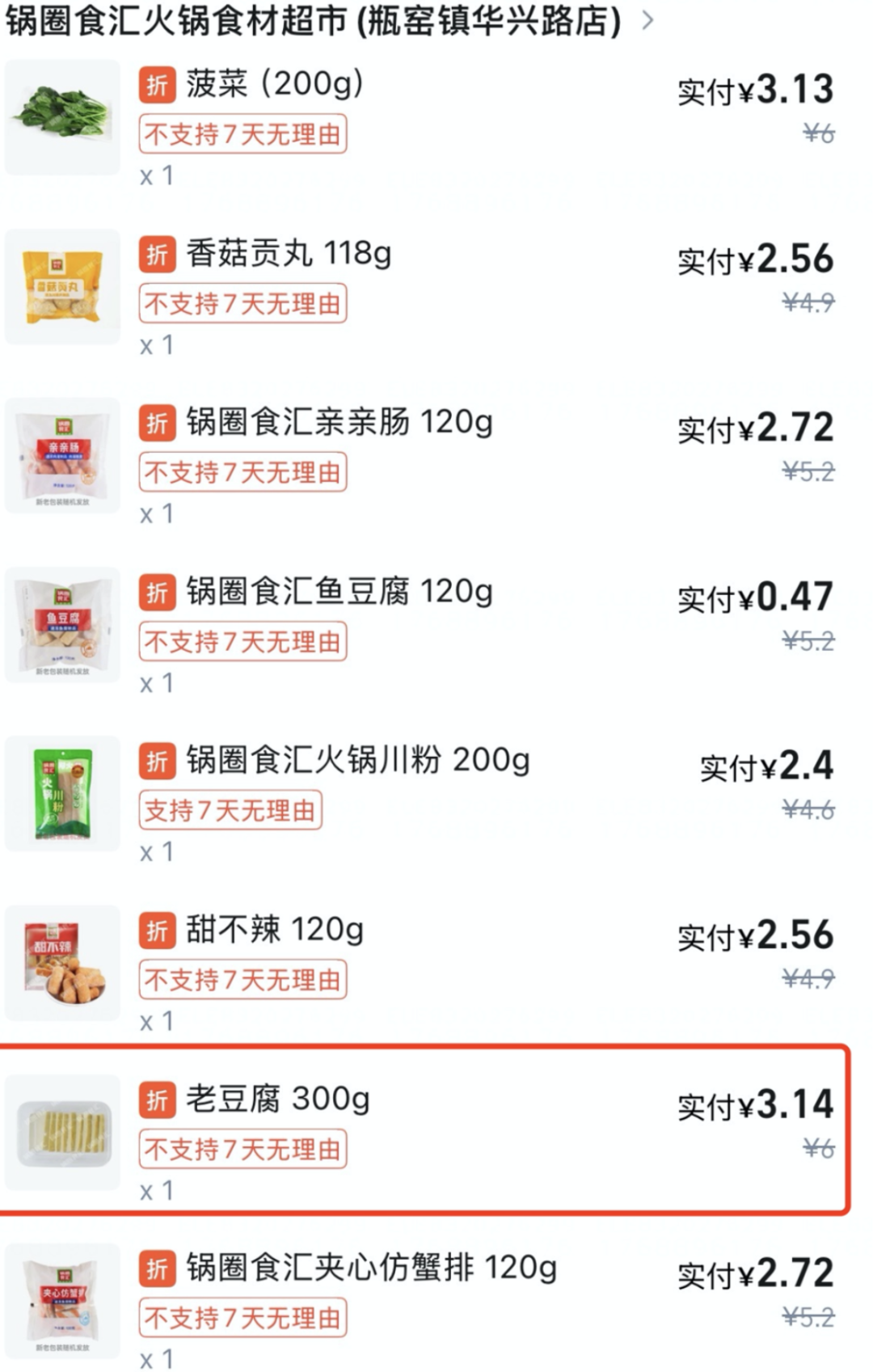 近日,杭州一消费者反映,1月15日通过外卖平台正在连锁品牌“锅圈食汇”订购的食材中,发觉一盒出产日期为2026年1月12日、保质期仅2天的老豆腐。经多方协商,门店最终补偿该顾客300元。