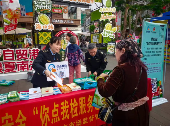 2025年2月4日,海口市市场监视办理局美兰正在国度级汗青文化街区——骑楼老街组织开展食物平安“你点我检 办事惠平易近生”从题宣传勾当。聚焦群众关心的食物选购、食用平安、法令学问等需求,宣贯《中华人平易近国食物平安法》《中华人平易近国反食物华侈法》、保健食物和